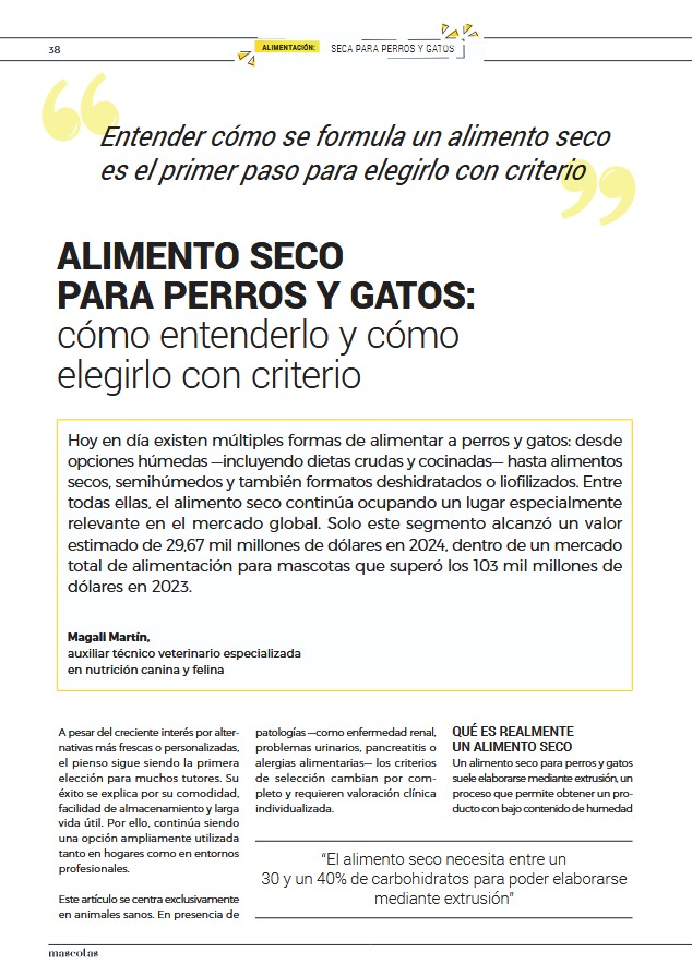 En este artículo publicado en Mascotas Interempresas, explico de forma sencilla y práctica cómo interpretar el alimento seco para perros y gatos y qué aspectos valorar para tomar una decisión informada.