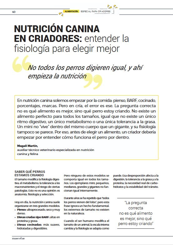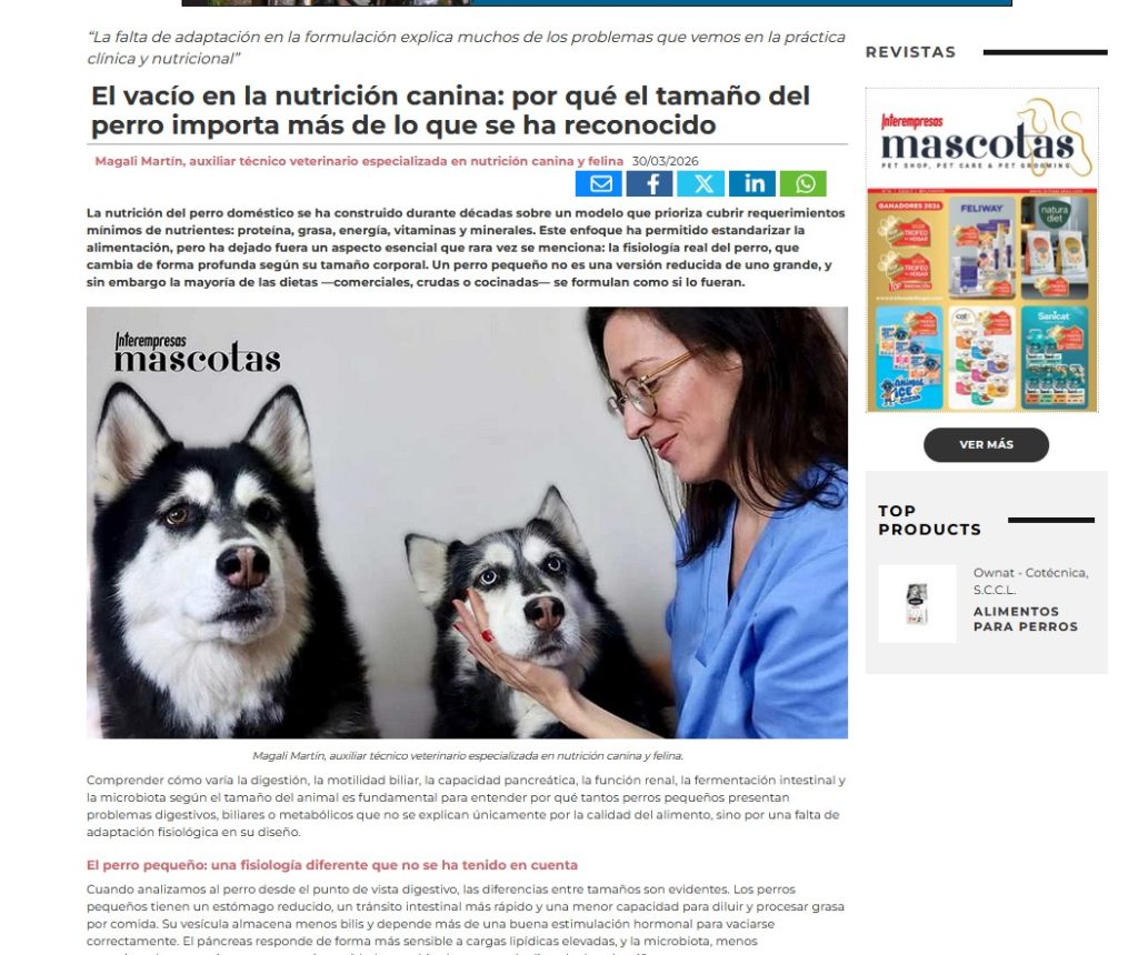 Este artículo pone de relieve un aspecto que a menudo se pasa por alto en la nutrición canina: el tamaño del perro modifica profundamente su fisiología digestiva y metabólica. Explico por qué los perros pequeños no pueden ser alimentados como versiones miniaturizadas de los grandes y cómo esta realidad cambia la forma de formular una alimentación verdaderamente adaptada.